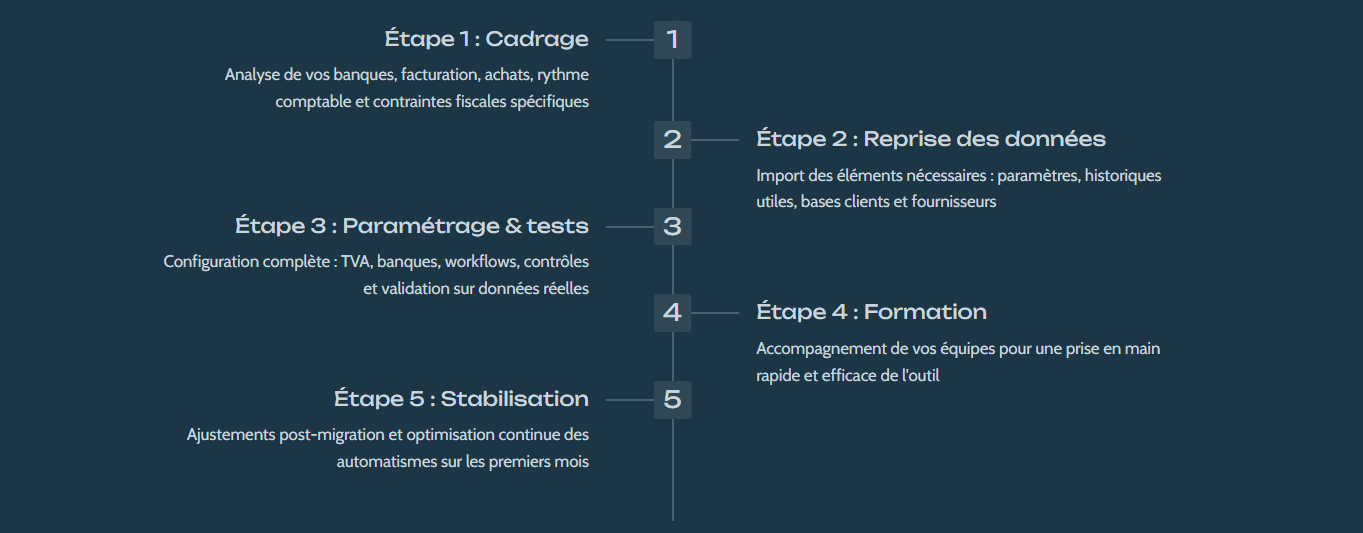 Notre expérience de dizaines de migrations nous permet de garantir une transition sans rupture, avec une continuité parfaite de votre information financière.